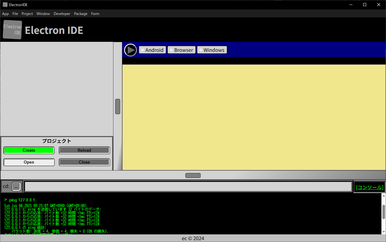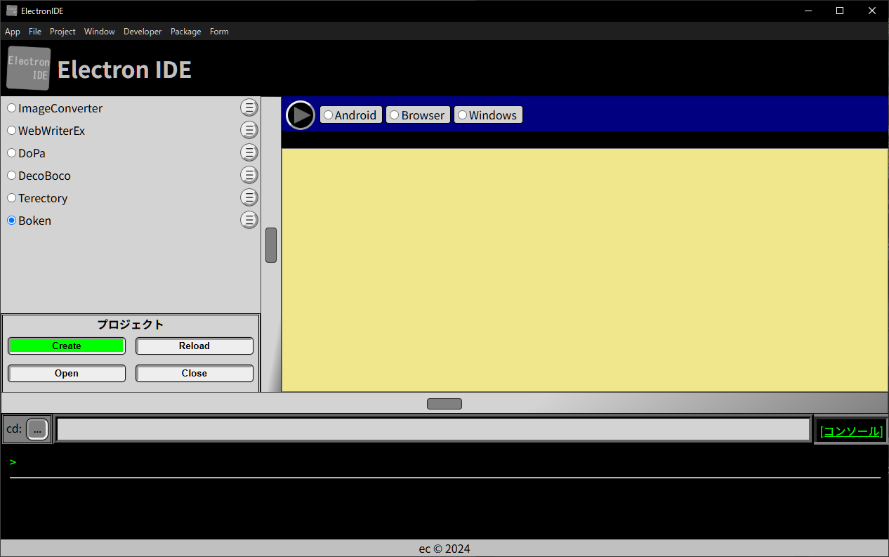 Android・Browser・Windowsでビルドを行なえます。